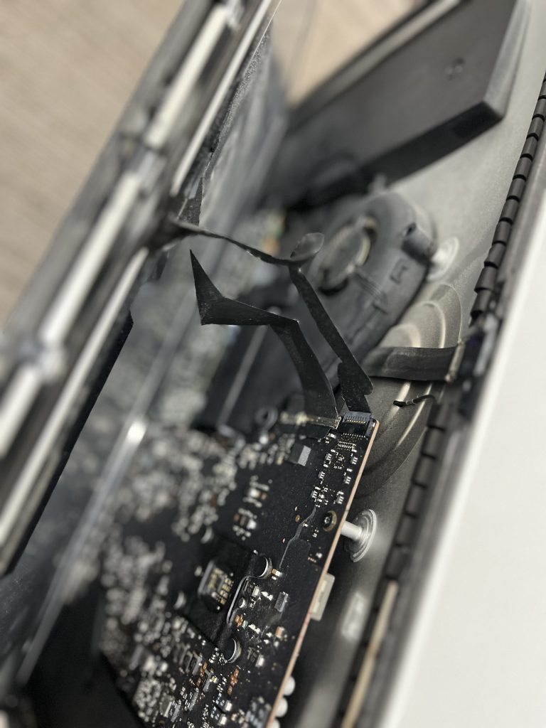 iMacは液晶を外さないと開けらえれないので、まずは液晶を本体から剥がします。